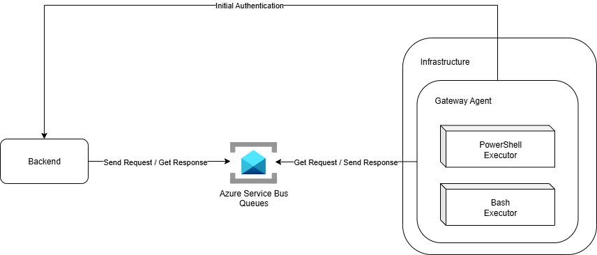 Upon startup, the agent authenticates with the backend to obtain the configuration and credentials required to connect to the appropriate Service Bus queues. From there, it begins sending collected data, executing scheduled checks, and reporting system health through secure outbound communication only.